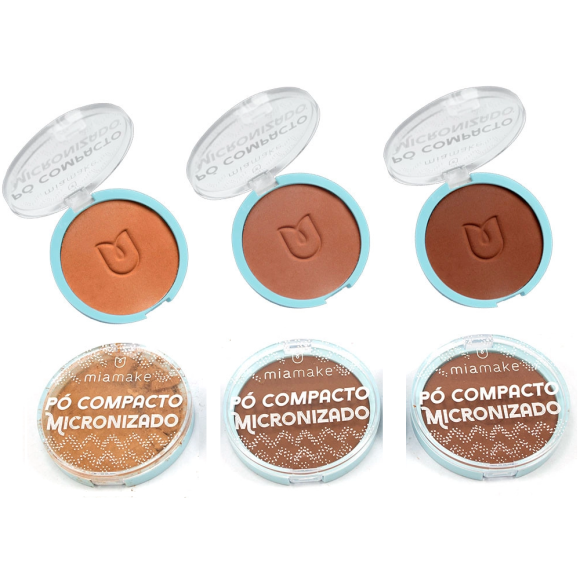 3 UNDS PÓ COMPACTO MICRONIZADO TONS ESCUROS MIA MAKE