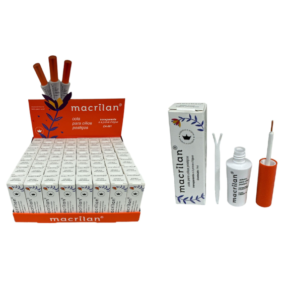 Descrição: Para garantir uma boa fixação dos cílios postiços uma boa cola é essencial para se sentir segura e arrasar com seus cílios A cola para cílios postiços macrilan é a prova D agua, na cor transparente garantindo durabilidade e boa fixação na aplicação dos cílios postiçosPara deixar o olhar ainda mais poderoso um delineado e sombreado com uma boa máscara de cílios é perfeito para deixar o olhar ainda mais poderoso