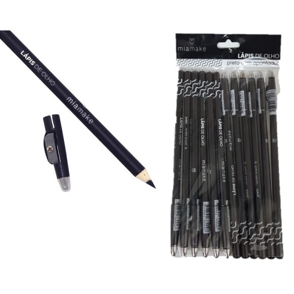 LÁPIS DE OLHO PRETO C/APONT MIA MAKE PCT 12 PÇS