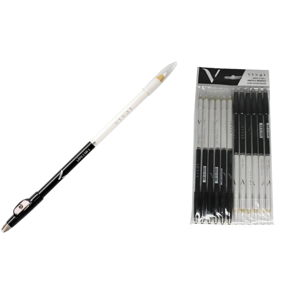 Descrição: O Lápis 2 em 1 Preto e Branco da Vivai foi desenvolvido para um delineado perfeito, tem alta pigmentação e traz um toque mágico para sua make! Pode ser usado da forma que você quiser!
