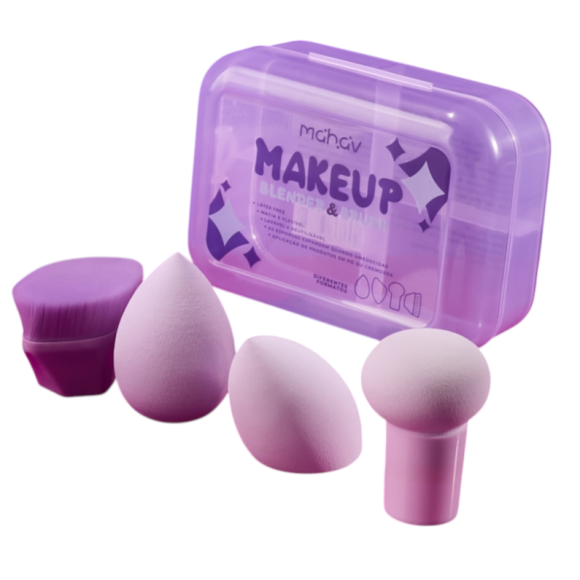 Descrição: O Kit Makeup Blender & Brush é pra quem ama versatilidade: com dois pincéis (um mágico e um em formato de gota) + duas esponjas (chanfrada e gota) que fazem de tudo um pouco. Perfeitos pra aplicar, espalhar, uniformizar e finalizar a make do seu jeito!