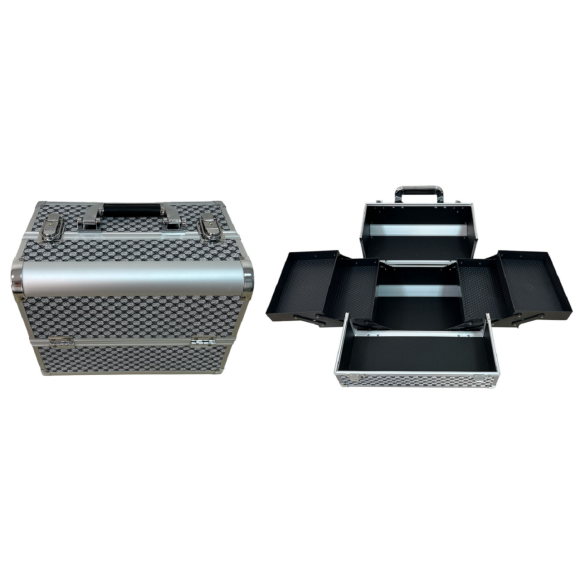 Descrição: Uso profissional e pessoal; Para guarda e transporte de maquiagens, bijuterias, joias e acessórios; Acessório que não pode faltar para os maquiadores; Design e estampa modernos; Lindo acabamento com perfis de alumínio; Fechadura com 2 chaves (1 reserva);