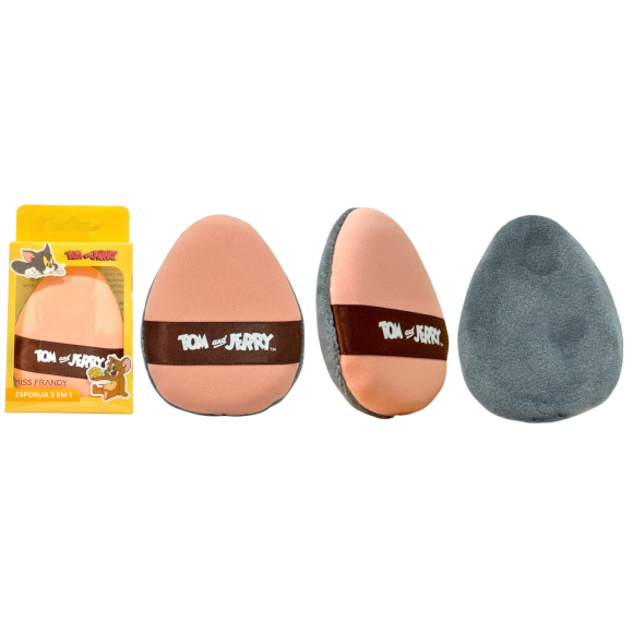 Descrição: A esponja para maquiagem Tom e Jerry da Miss Frandy é um acessório com toque macio e formato anatômico inspirado no desenho animado, ideal para aplicar produtos como base, corretivo e pó, proporcionando um acabamento natural e uniforme.