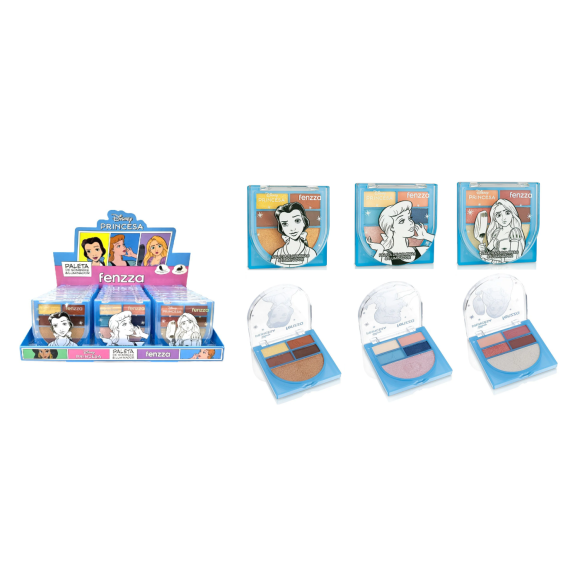 PALETA DE SOMBRAS E ILUMINADOR PRINCESA 1-3 FENZZA CX 24 PÇS
