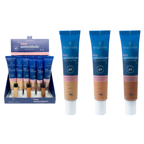 2. BASE MATTE TONS ESCUROS ANTIOXIDANTE MULTIFUNCIONAL MIA MAKE CX 24 PÇS