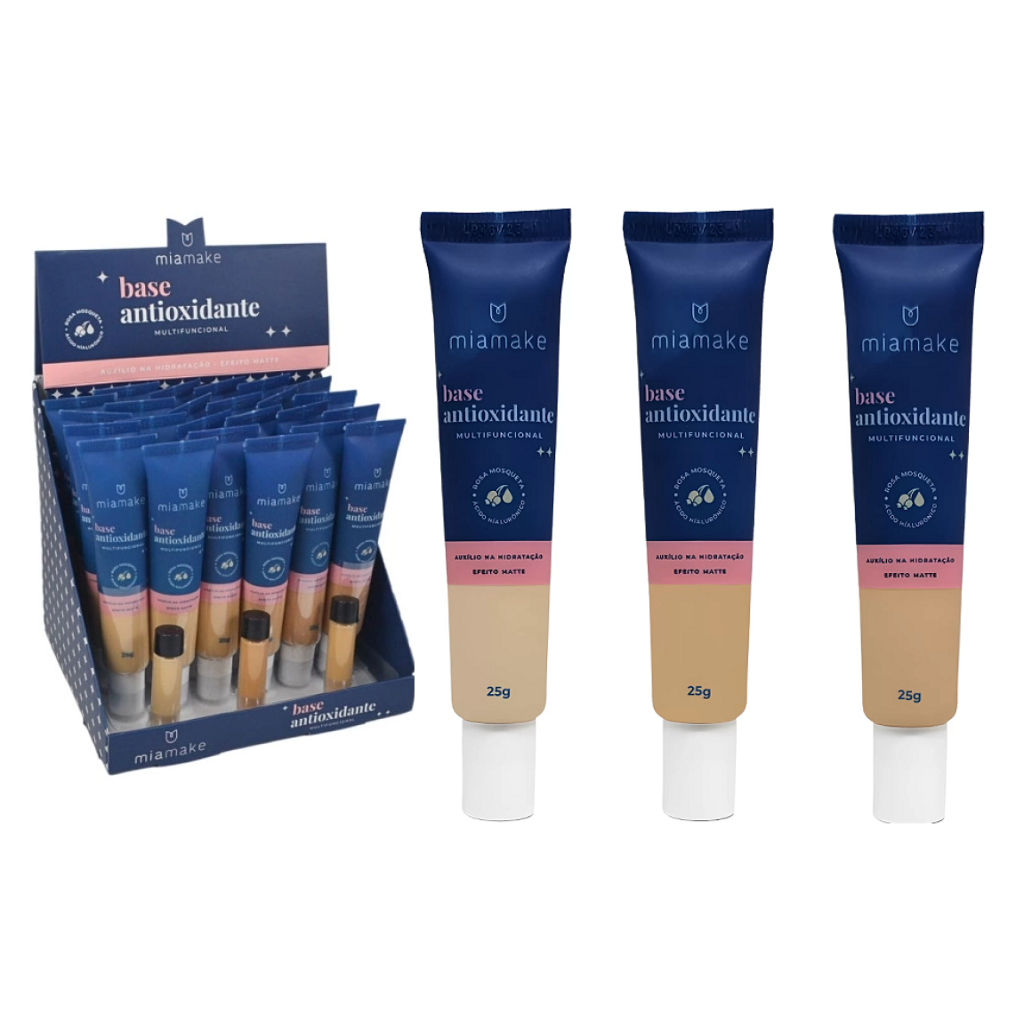 BASE MATTE TONS MÉDIOS ANTIOXIDANTE MULTIFUNCIONAL MIA MAKE CX 24 PÇS