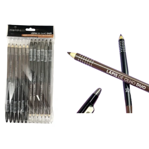 LÁPIS DE OLHO DUO PRETO E MARROM C/APONT MIA MAKE PCT 12 PÇS